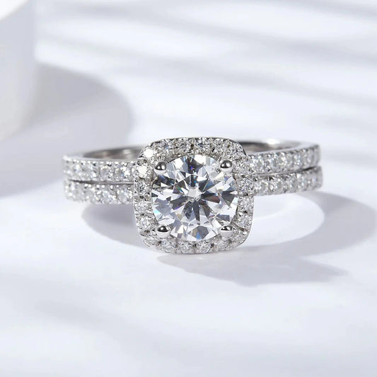 The Anastasia Round Cut Halo Pave Moissanite Wedding Set